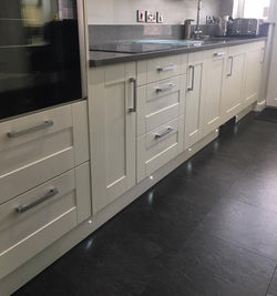 Home Directs Ivory Shaker with Solid Quartz Stone Worktops and matching upstands, Built in Appliances & Kitchen grade flooring plus much more.
